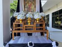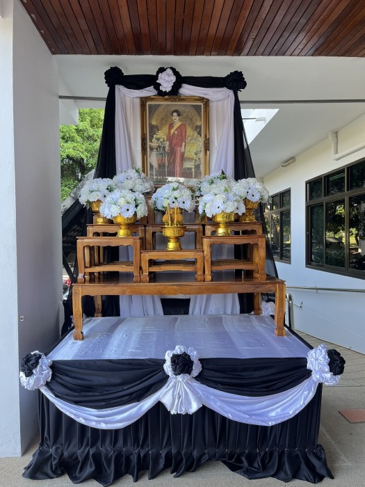 เทศบาลตำบลเหมืองจี้จัดโต๊ะหมู่บูชาประดิษฐานพระฉายาลักษณ์ สมเด็จพระนางเจ้าสิริกิติ์พระบรมราชินาถ พระบรมราชชนนีพันปีหลวง พร้อมเครื่องสักการะและเครื่องทองน้อย เพื่อให้ประชาชนได้ถวายราชสักการะและแสดงความอาลัย ณ ด้านหน้าอาคารสำนัก