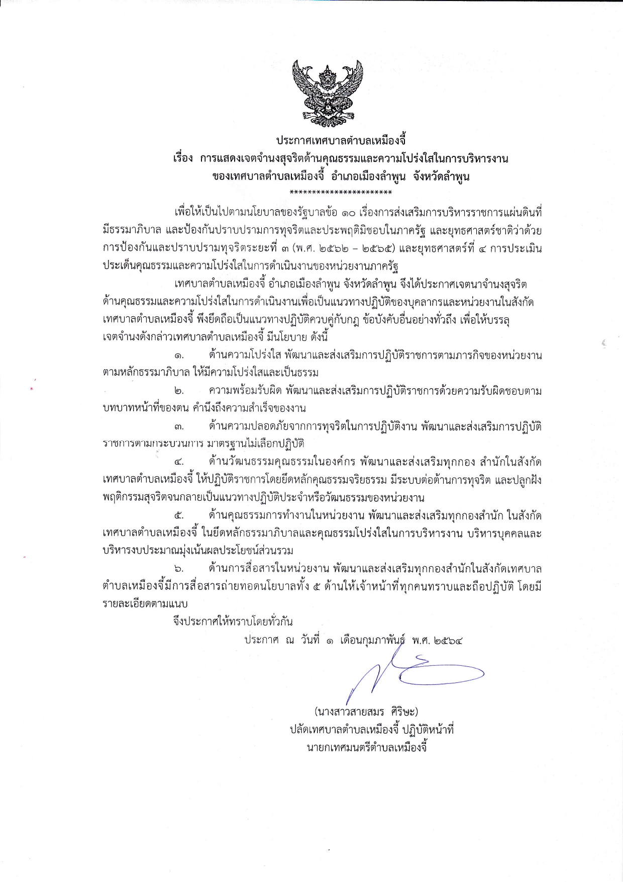 นโยบายคุณธรรมเเเละความโปร่งใสเเละเจตจำนงสุจริตของผู้บริหาร