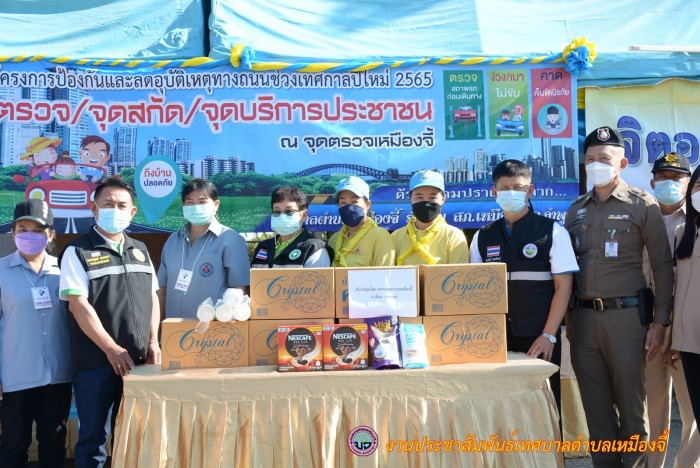 วันนี้ (29 ธ.ค.64) เวลา 10.00 น. เทศบาลตำบลเหมืองจี้ นำโดยนายวรกาญจน์ ธรรมตา รองนายกเทศมนตรีตำบลเหมืองจี้ พร้อมด้วย นายธีระศักดิ์ จันทร์ภิรมย์ ปลัดเทศบาล ,นางสาวภุมรีย์ จี้อินทร์ หัวหน้าสำนักปลัด, เจ้าหน้าที่งานป้องกันฯ และพนักงานเจ้าหน้าที่ ทต.เหมืองจี้ ซึ่งได้รับมอบหมายจากนายกเทศมนตรีตำบลเหมืองจี้ ร่วมกับ ทางเจ้าหน้าที่จาก สภ.เหมืองจี้ , รพ.สต.เหมืองจี้ และ อสม.ตำบลเหมืองจี้ ได้ร่วมออกจุดตรวจ จุดบริการประชาชนและได้ร่วมสนับสนุนน้ำดื่มและเครื่องดื่มชูกำลังให้กับผู้ปฏิบัติหน้าที่และประชาชน ตามนโยบาย "ชีวิตวิถีใหม่ ขับขี่อย่างปลอดภัย ไร้อุบัติเหตุ" ณ บริเวณป้อมตำรวจแยกป่าห้า ตำบลเหมืองจี้ อำเภอเมืองลำพูน จังหวัดลำพูน เพื่อรณรงค์ป้องกันและลดอุบัติเหตุทางถนนในพื้นที่ช่วงเทศกาลปีใหม่ 2565
