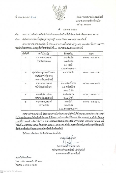 ประชาสัมพันธ์แจ้งกำหนดการจ่ายเงินเบี้ยยังชีพฯ ประจำเดือนเมษายน 2568