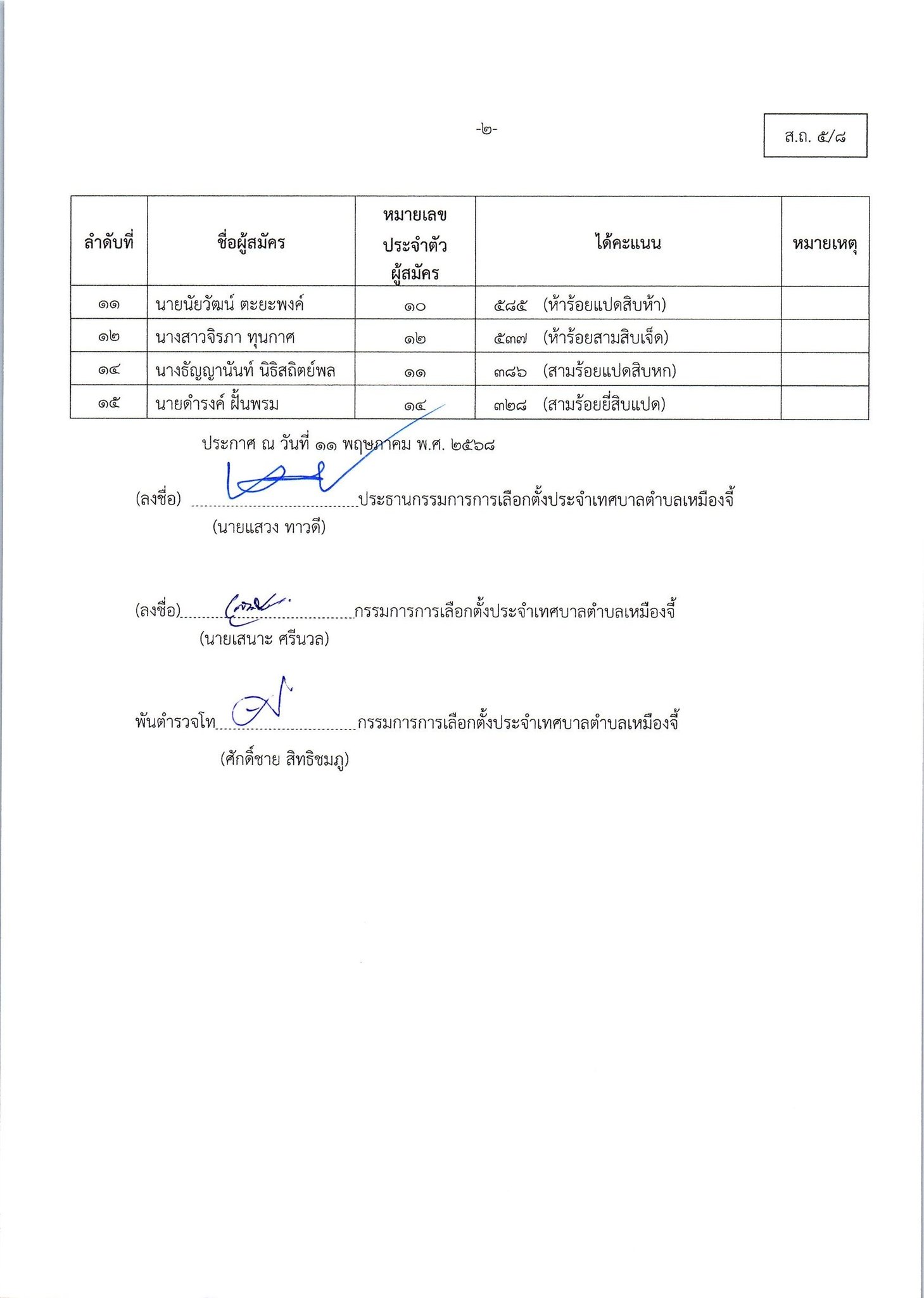 ผลการนับคะแนนเลือกตั้งสมาชิกสภาเทศบาลตำบลเหมืองจี้และนายกเทศมนตรีตำบลเหมืองจี้ (อย่างไม่เป็นทางการ) วันที่ 11 พ.ค. 68