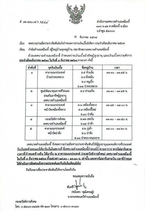 ประชาสัมพันธ์แจ้งกำหนดการจ่ายเงินเบี้ยยังชีพฯ ประจำเดือน ธันวาคม 2568
